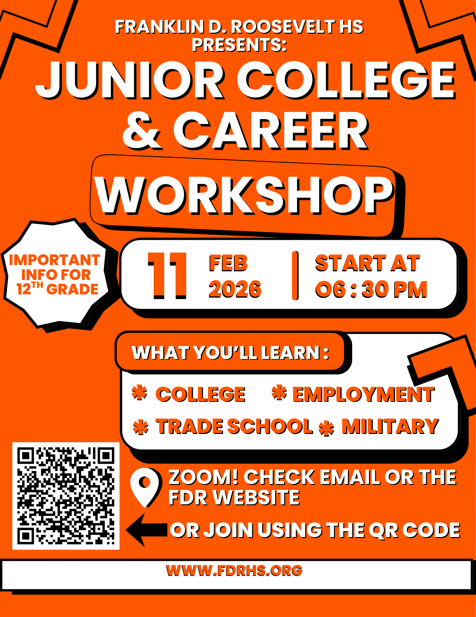 Learn more about SAT exams, how to research colleges, where to begin, and resources available to you. This is a process on top of all the courses that you will be taking this year and in 12th grade. We will begin at 6:30pm with a short Q/A session to follow.
